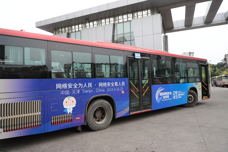 2019年国家网络安全宣传周于9月16日至22日在天津举办。9月11日,由天津市委网信办和天津市公交集团联合打造两部主题公交车在公交906路正式上线运营,该线路途经友谊路、滨江道等繁华路段,车辆突出了“网络安全为人民 网络安全靠人民”的宣传主题,便于更好地宣传网络安全知识,让网络安全意识深入人心。